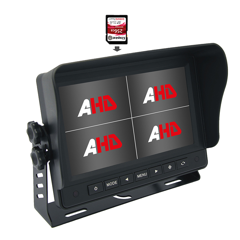 Quad AHD монитори: Нашите Quad AHD монитори извеждат безопасността на превозните средства на следващото ниво. Способен да показва и записва четири видео емисии едновременно, тези системи предлагат пълен изглед на съраунд. С многоканални режими на показване и независимо архивиране на файлове, драйверите могат да наблюдават с лекота отзад / отпред / страна на автомобила си.