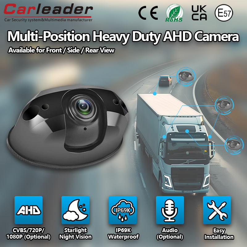 В областта на превозните средства, Carleader1080P AHD Starlight супер широкоъгълна камера за задно вижданесе използват широко в камиони, автобуси, училищни автобуси, инженерно оборудване за RV и други тежки превозни средства. Може да се използва като камера за предно, странично и задно виждане и дори може да се комбинира с MDVR за постигане на видеозапис, дистанционно наблюдение, управление на автопарк и други функции